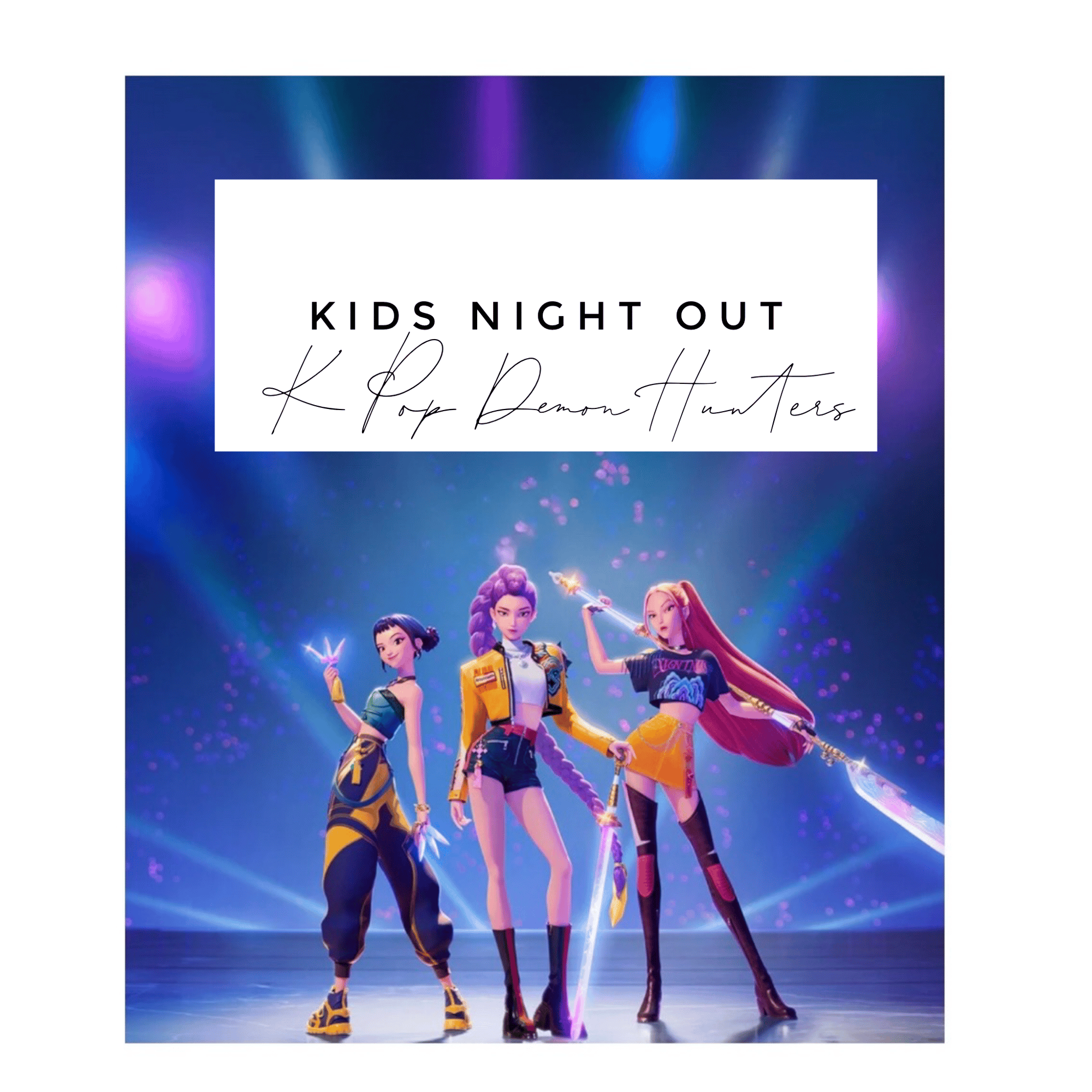 Where are all my K POP DEMON HUNTERS fans???? We’re hosting a super night kids night out for all our little K POP lovers. We’ll have pizza, a fun treat, play K POP Bingo, paint a Derpy Cat, and make some tiny demon hunter perler bead designs. It’s going to be a blast!